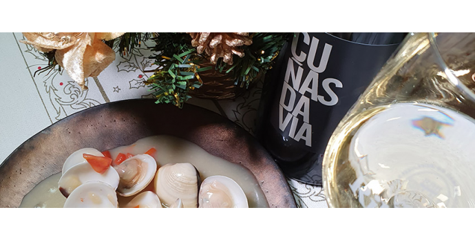 El debate está abierto entre marisco y pescado con vino blanco o con tintos ligeros. Nuestro Cuñas blanco es sabroso y amplio en boca, con una buena persistencia frutal y una acidez justa que le aporta frescura y un final largo, untuoso y equilibrado. Ideal para mariscos con sabor potente y combinados con un cocinado que le aporte sabores de contraste, como unas vieiras a la gallega, con su guiso de cebolla y su final gratinado en el horno.